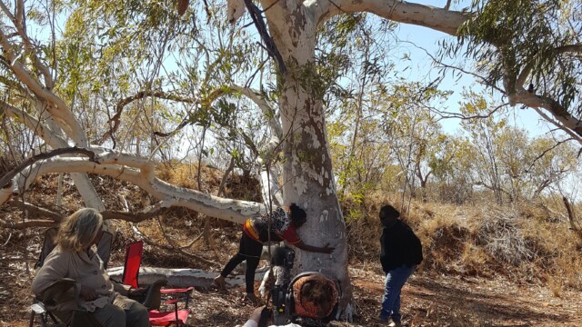 Not far from the Buminyji Outcamp is an important tree that was the birthplace of many of the Yindjibarndi ancestors, as well as many members of the Yindjibarndi community alive today. The importance of this place is linked with the idea of a metaphorical family tree and forms a big part of the Yindjibarndi people’s connection with the area. The tree is a part of nature and cannot be moved. Similarly, where Yindjibarndi people were born ties them to that place, and that birthplace and cultural connection cannot be shifted.