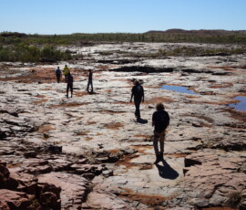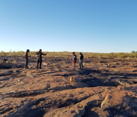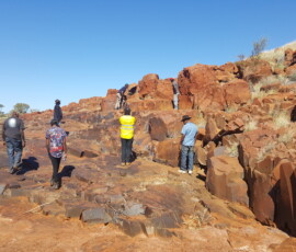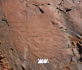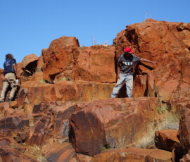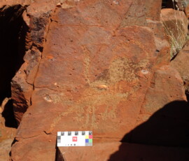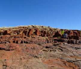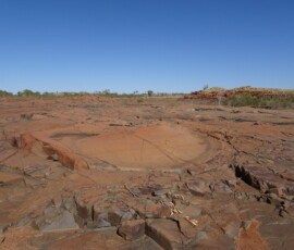 Along a ridgeline to the east of the bundut there are engravings with motifs of human and animal figures. These engravings tell stories of Yindjibarndi people and their activities here. Grinding patches also found here suggest the place has been used consistently over thousands of years. These grinding patches were utilised by Yindjibarndi people who were camping at this place and producing flour from seeds, sharpening tools, or preparing ochre for ceremonies.