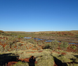 Jina forms part of Yindjibarndi creation stories and is identified by visible footprint markings left in the bedrock near the river. These footprints were made by the Yindjibarndi ‘old people’ when the world was soft, a creation time known as ngurra nyjunggamu. The stories of Jina relate to Barrimirndi, the powerful Dreamtime serpent that travelled from the sea eastwards into the desert. The Yindjibarndi traditional custodians for this area were brought here as young men by their uncles and fathers and told the story for this place.