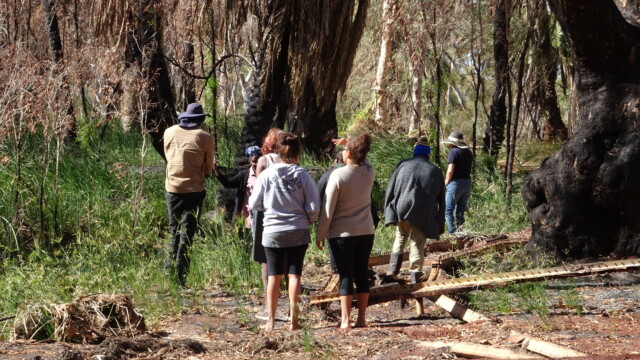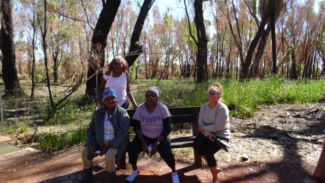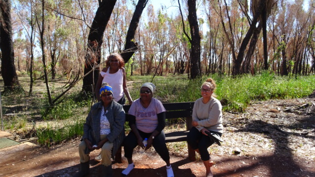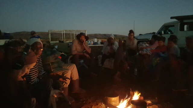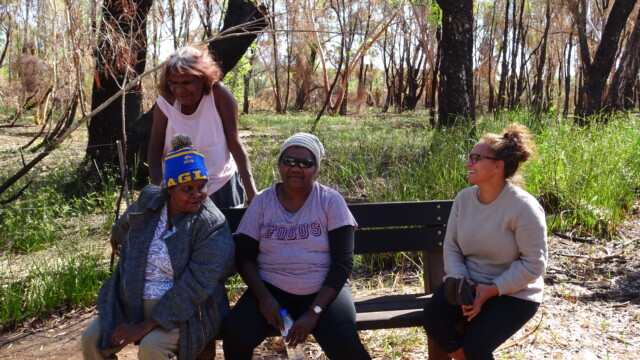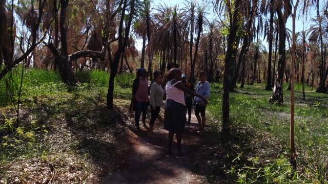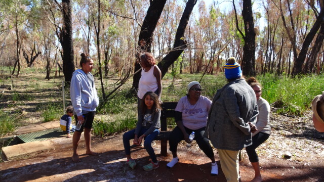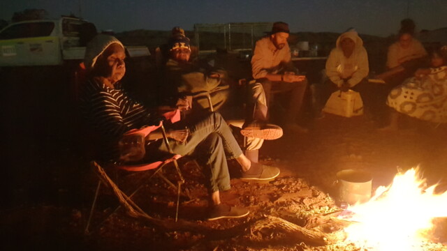 While on a visit to Jirndawirrinha, Yindjibarndi Traditional Owners camped out at the Millstream Airstrip overnight. The ladies told lots of stories around the campfire, including talking about traditional bush food. They cooked and ate bush tomatoes (garlumbu) and focused on passing on stories to the next generation through the Yindjibarndi children who were on the trip.