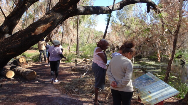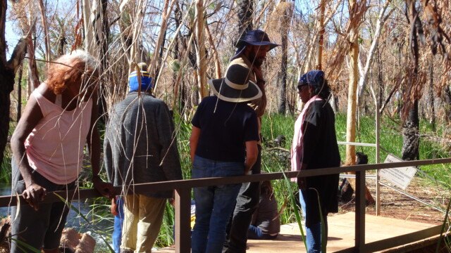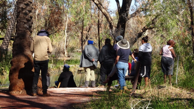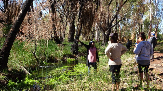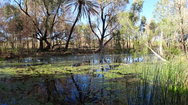 Also found here is Lily Pond, which is an important example of the need for Yindjibarndi traditional custodians to be involved in the care and maintenance of Country and cultural places. In past years Yindjibarndi station workers would keep Lily Pond free of weeds and debris, and routinely clear out the lilies to support the natural eco-systems and maintain the free flow of water. Cultural practices were performed at Lily Pond by senior Yindjibarndi men that would ensure rainfall to keep Country healthy. Without this important cultural maintenance by Yindjibarndi people, the pool becomes clogged and the pool is no longer healthy. The health of Country directly impacts the health of the Yindjibarndi community.