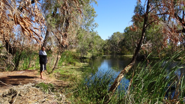 The most significant pool at Jirndawirrinha is Nhankangu, also known as Deep Reach. The traditional custodians for this area are known as Nhankangu and include Sylvia Allan, Bruce Monadee and Jimmy Horace. It holds an important story about Barrimirndi, the powerful Dreamtime serpent who travelled from the sea to the desert.