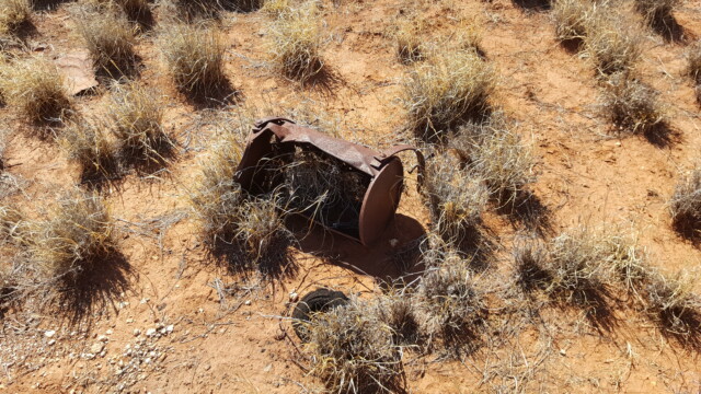 The most recent activity seems to be by a goanna digging a burrow. Several star-crimped, .22 Hornet casings surround the burrow, which suggests a hunt.