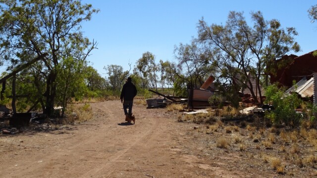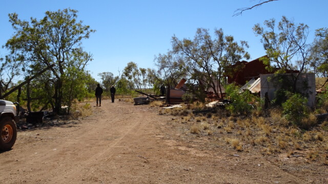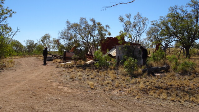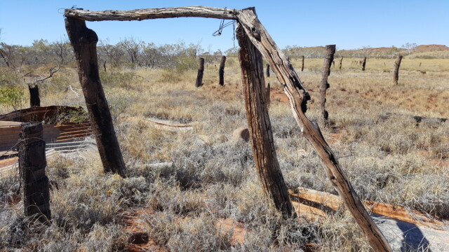 The station dates from the mid-1880s, but it was not until station manager William Cusack arrived in 1892 that construction commenced on the mudbrick homestead. His son, Thomas Cusack, took over the management around 1922 after his father died during World War I. Thomas lived in the homestead with his wife Olive ‘Dosh’ Cusack. In the years that followed the station became a busy place for social gatherings and tennis parties. The events drew in people and Aboriginal workers from around the district up until Thomas died from a self-inflicted gunshot wound in 1936. His body was buried on the rise just north-east of the homestead. He was joined by his wife ‘Dosh’ fifty-one years later. Following Thomas’ death, the station fell to ruin and was completely abandoned by the time Les Parsons from Coolawanyah Station bought it in 1950. It was incorporated into the Coolawanyah lease in 1970 and remains part of that station today. Aboriginal workers and those living at Tambrey station during the late 30s and 40s moved on to other camps at Coolawanyah, Mt Florance, Hooley and Mulga Downs.