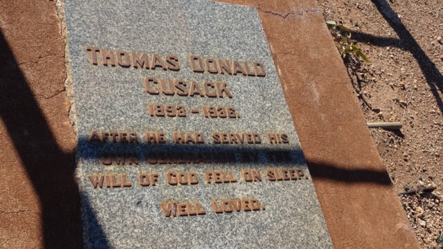 Following the death of Thomas in 1936, Dosh remained at the station with Charles ‘Bud’ Ferguson. It is not clear when she left, but the station and homestead gradually fell to ruin and was completely abandoned by 1950. She eventually became the headmistress at Presbyterian Ladies College in Perth and when she died in 1985 her ashes were placed at the grave of her husband. The Cusack’s had 3 children and the gravesite was fenced by their descendants.