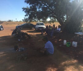 Two Mile Reserve is located a short distance from the town of Roebourne but is separated from it by the Harding River. In a flat adjacent to the North-West Coastal Highway, two old pine trees mark the place that Aboriginal people lived in shacks with minimal amenities. The Yindjibarndi traditional custodians shared their stories and those of their Old People, about their lives caught between this place and the stations such as Mt Florance, Tambrey and Millstream. Many Yindjibarndi people moved to the reserve after rations camps closed following the 1946 Pilbara strike, a movement that saw Aboriginal workers striking for wages. There was an evolution of Aboriginal employment in this region that moved from servitude, to rations, and eventually to wages for some station workers. The Yindjibarndi traditional custodians spoke about how their Old People had to leave the tablelands stations and their country and move to the reserves by the coast. The ability to take care of country and practice culture became less possible as a result. The Yindjibarndi traditional custodians recall getting together with family during Law time each year, when people would come to the reserve from all over the region to practice culture. During the school holidays many children and families would commute between the reserve and surrounding stations on the mail truck. In 1975 the reserve was demolished, and most people moved to Roebourne Village.